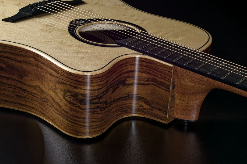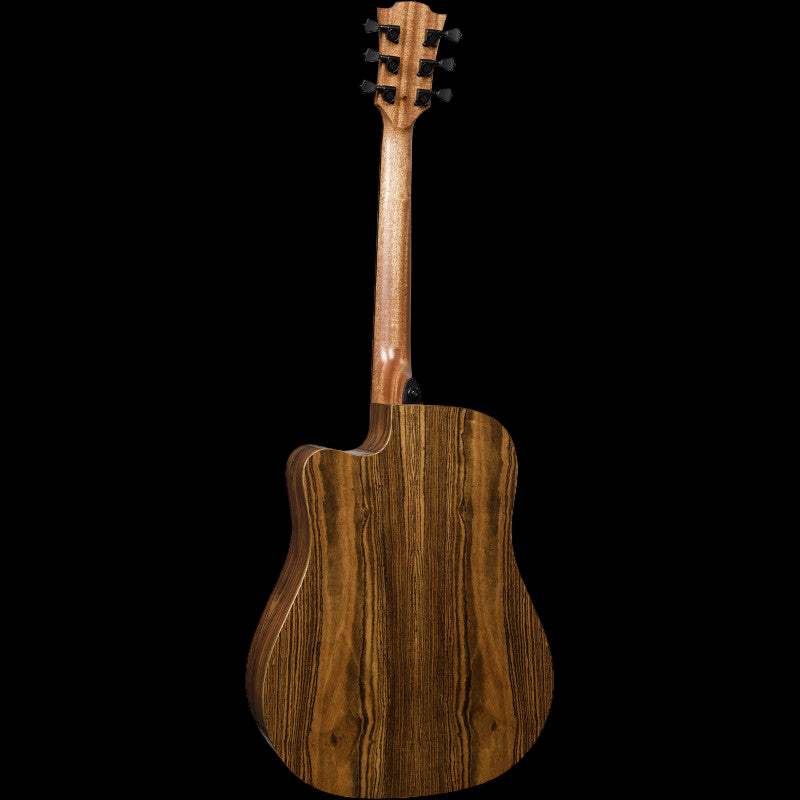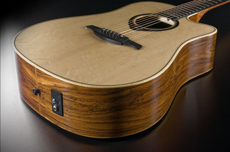 The HV30DCE blends the powerful projection of a dreadnought with the elegance of premium tonewoods and smart guitar technology. A solid bearclaw Engelmann spruce top ensures bright, clear tones, while figured ziricote back and sides enhance the depth and aesthetic appeal. The cutaway design allows for easy access to the upper frets, making it well-suited for dynamic playing styles. A high-gloss finish, along with a sustainable Black Brankowood fingerboard and bridge, completes this refined and resonant instrument.