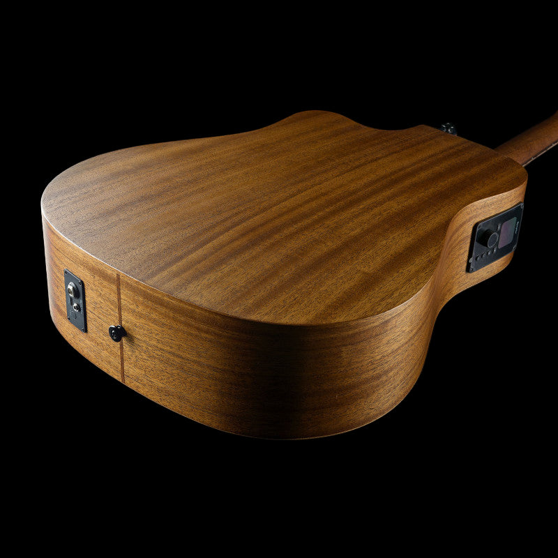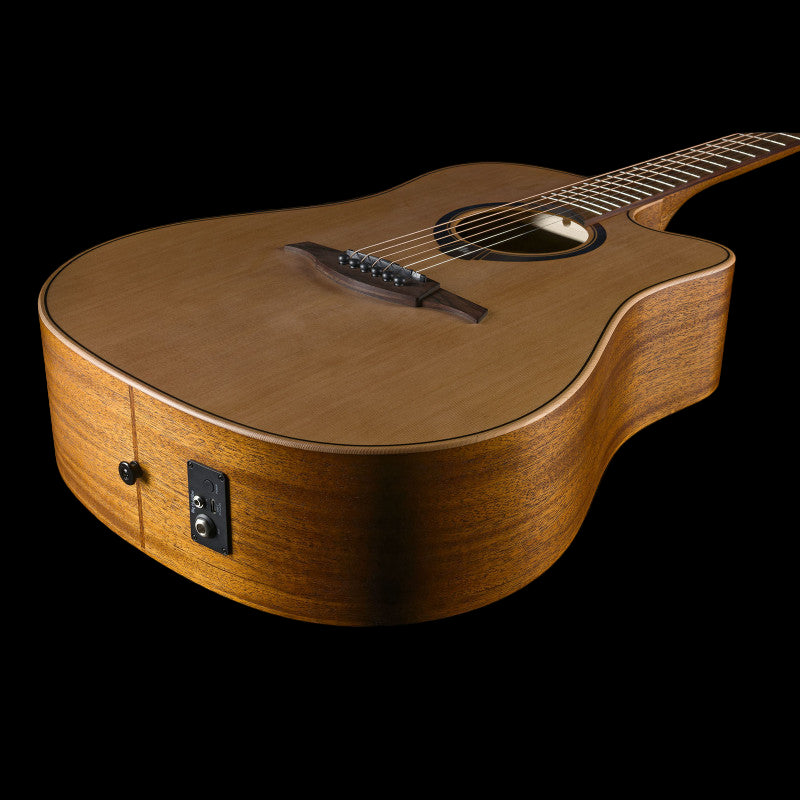 Acoustically, this guitar is built to be a rock-solid, and reliable acoustic.... A solid red cedar top and Khaya mahogany back and sides create a warm, resonant tone with outstanding clarity. The cutaway design allows you to play freely and effortlessly even on the highest frets, making this guitar a well-rounded and versatile choice for any playing style.